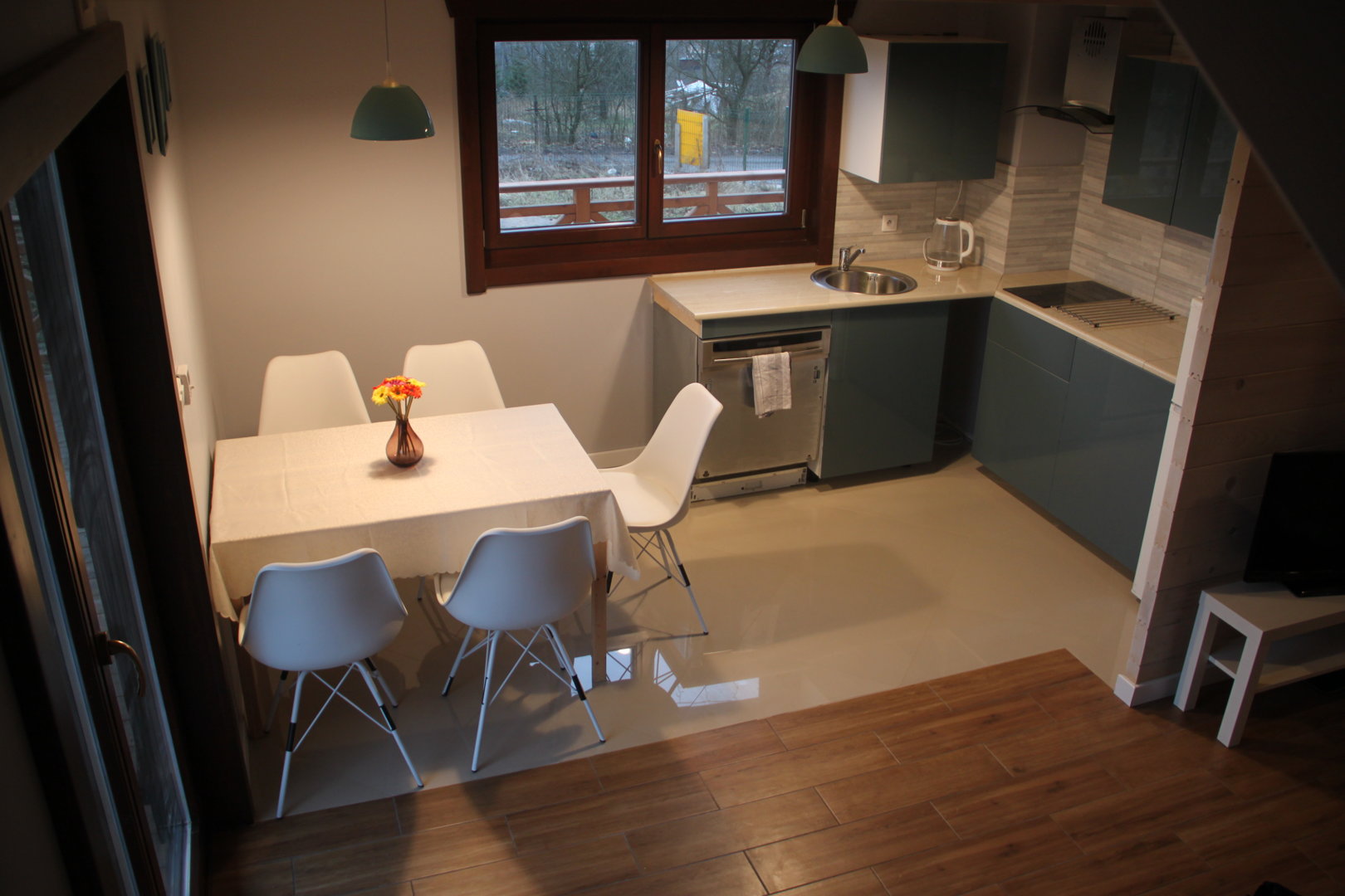 Kuchnia w pełni wyposażona (lodówka, mikrofala, płyta ceramiczna, zmywarka, komplet naczyń);